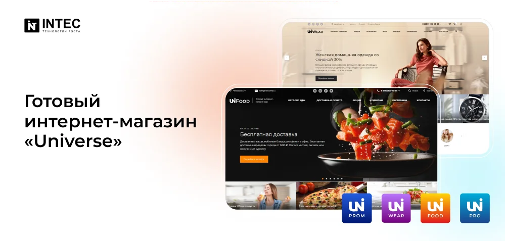 Готовые сайты IntecUniverse позволяют сэкономить до 450 000 рублей на создании интернет-магазина с нуля — шаблоны уже включают готовые вариации дизайна и функционала.