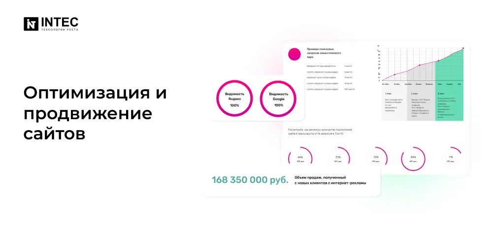 Доверьте продвижение вашего сайта специалистам INTEC и получите максимальную отдачу от своего веб-ресурса. Свяжитесь с нами сегодня, чтобы начать свой путь к успеху в онлайн-пространстве.